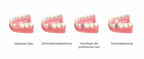 Implantatbehandlungen erfordern in der Regel unterschiedliche Terminzeiten, je nach dem Programm, das Ihr Zahnarzt vorbereiten wird. Bitte konsultieren Sie Ihren Zahnarzt für ausreichende Informationen.