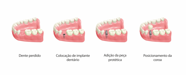 Se houver um dente ausente, o melhor material para substituir o dente é o implante. A aplicação de implantes feitos de materiais biocompatíveis é realizada colocando-os no osso da mandíbula.