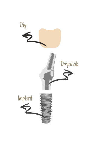 İmplantlar, yeni protez diş veya dişlerinizin oluşmasını kemik içine yerleştirilerek destekleyeceklerdir. Dental implantlar protez dişler için sağlam bir destek oluşturacak en iyi kemik içi diş kökü protezi olarak düşünülebilirler. Size konfor ve hoş bir görüntü vermek adına kemiği ve yumuşak dokuyu koruyarak görev yaparlar.